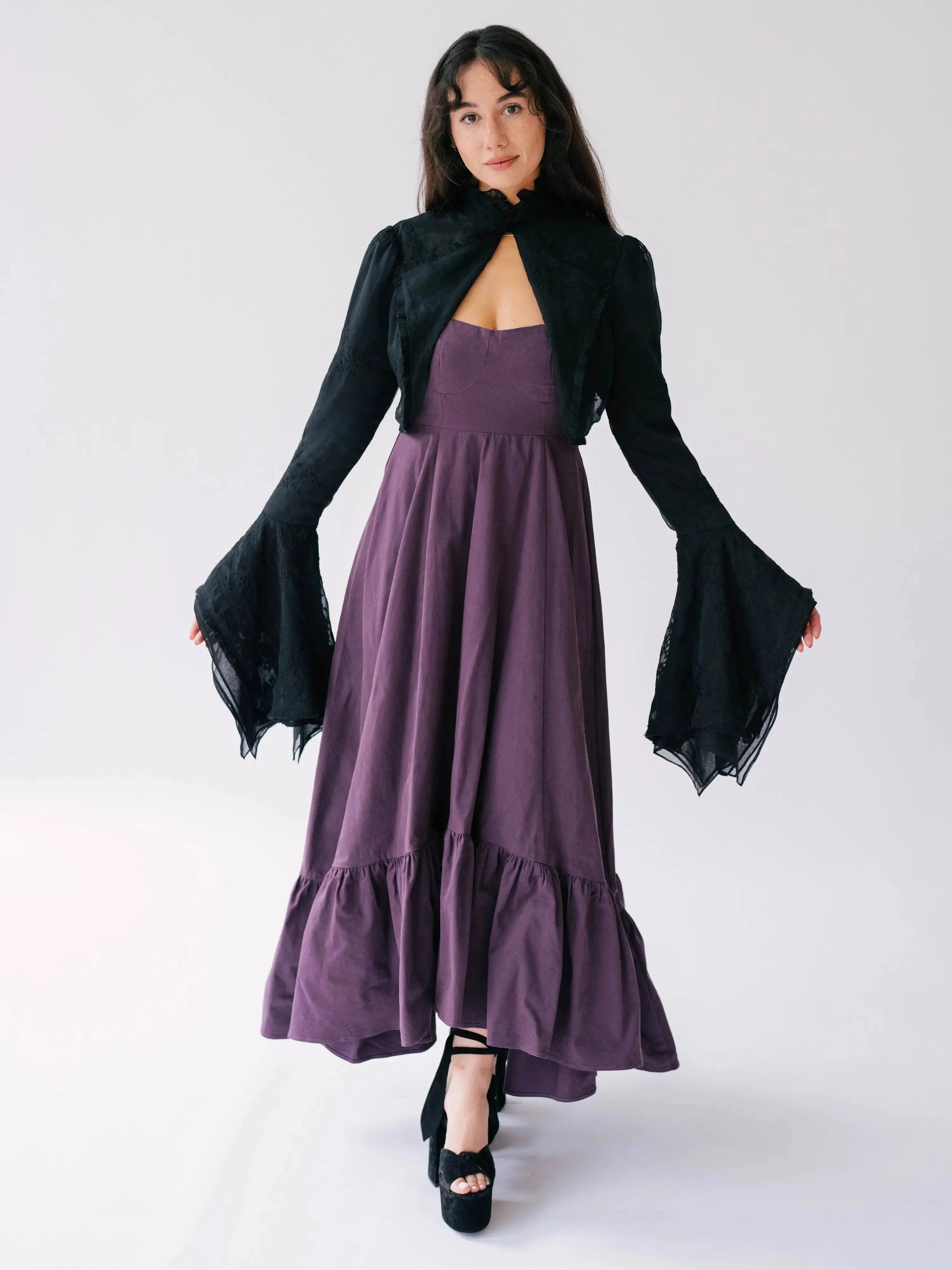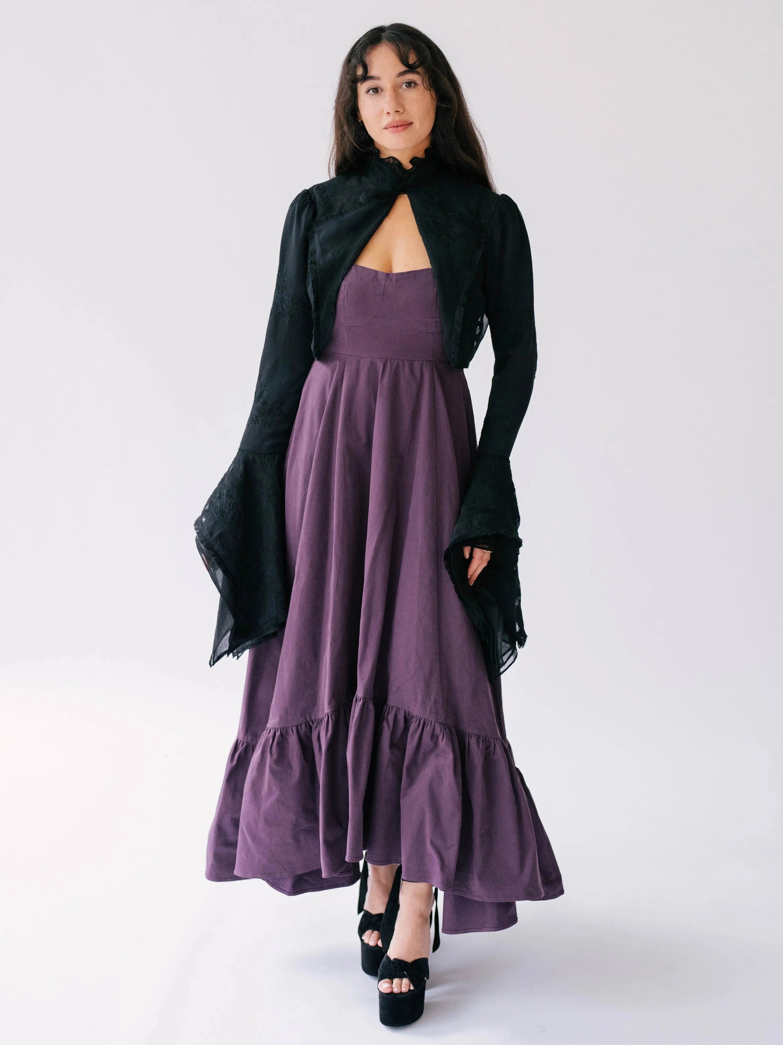 Fegan is styled with The Lady Elizabeth Midnight Black Victorian Jacket