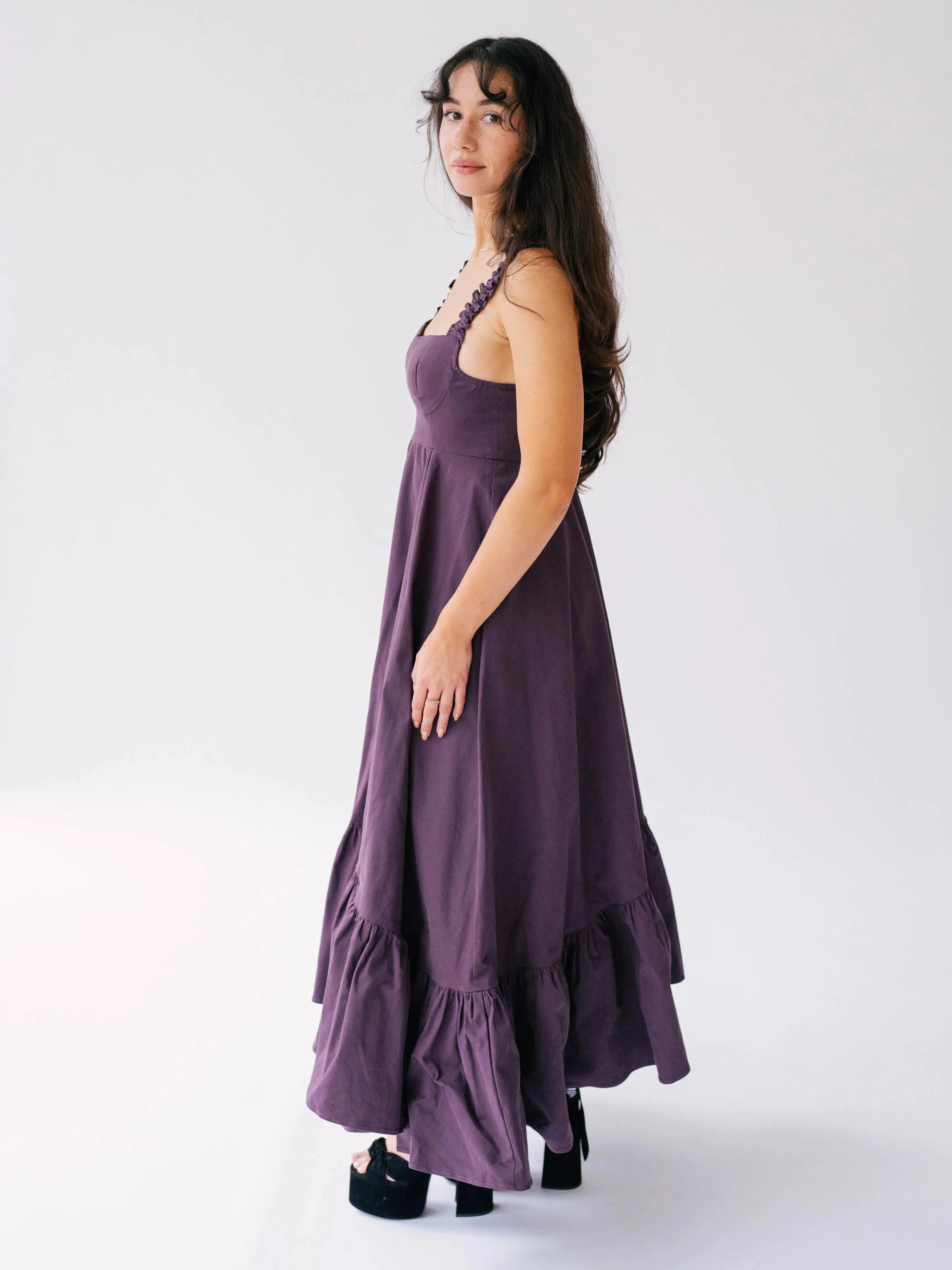 Sewn from premium heavy weighted cotton, it falls in a silhouette that flatters every body type with ease. The high-low hem shifts with each step allowing it to be shorter in the front and back and longer at the sides. The ruched elastic straps and lined bodice allow it to be comfortable to wear, while the hand-dyed fabric gives each and every one of these cotton midi dresses its own subtle character and shade variation. No one dress is the same. Yours will be unique to you.