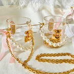 • Détail de la poignée en perles et de la chaîne en or : la délicate poignée en perles ajoute une touche luxueuse et féminine, tandis que la chaîne en or garantit qu'elle capte parfaitement la lumière.